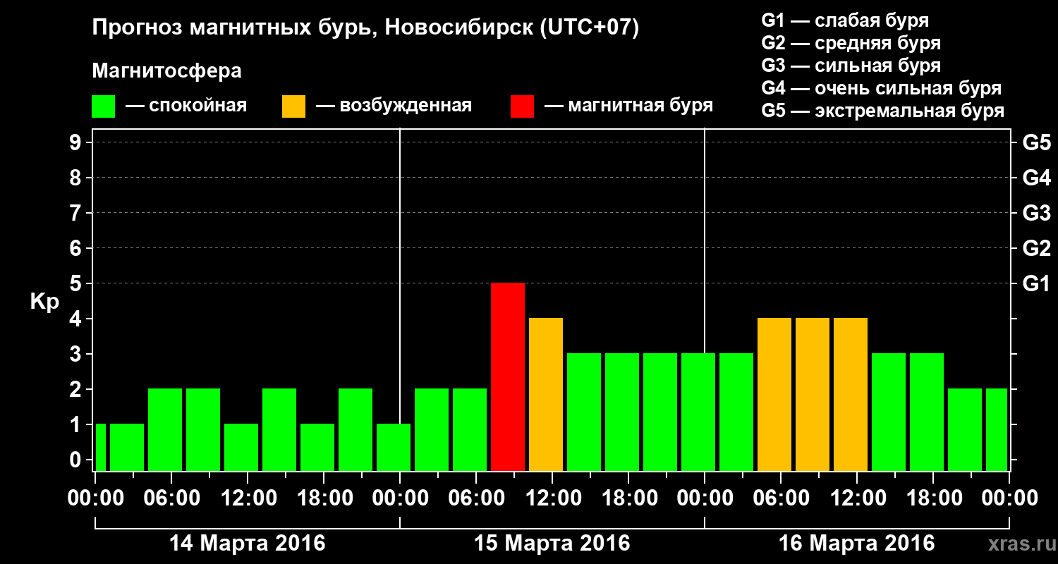 Прогноз магнитных бурь в Новосибирске — 14 марта 2016 года