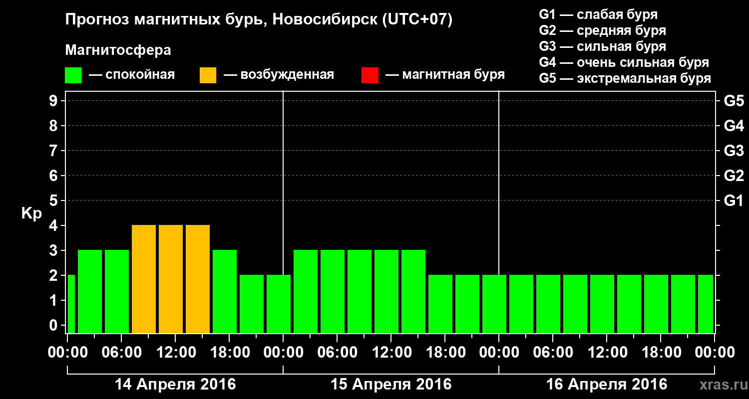 Прогноз магнитных бурь в Новосибирске — 14 апреля 2016 года