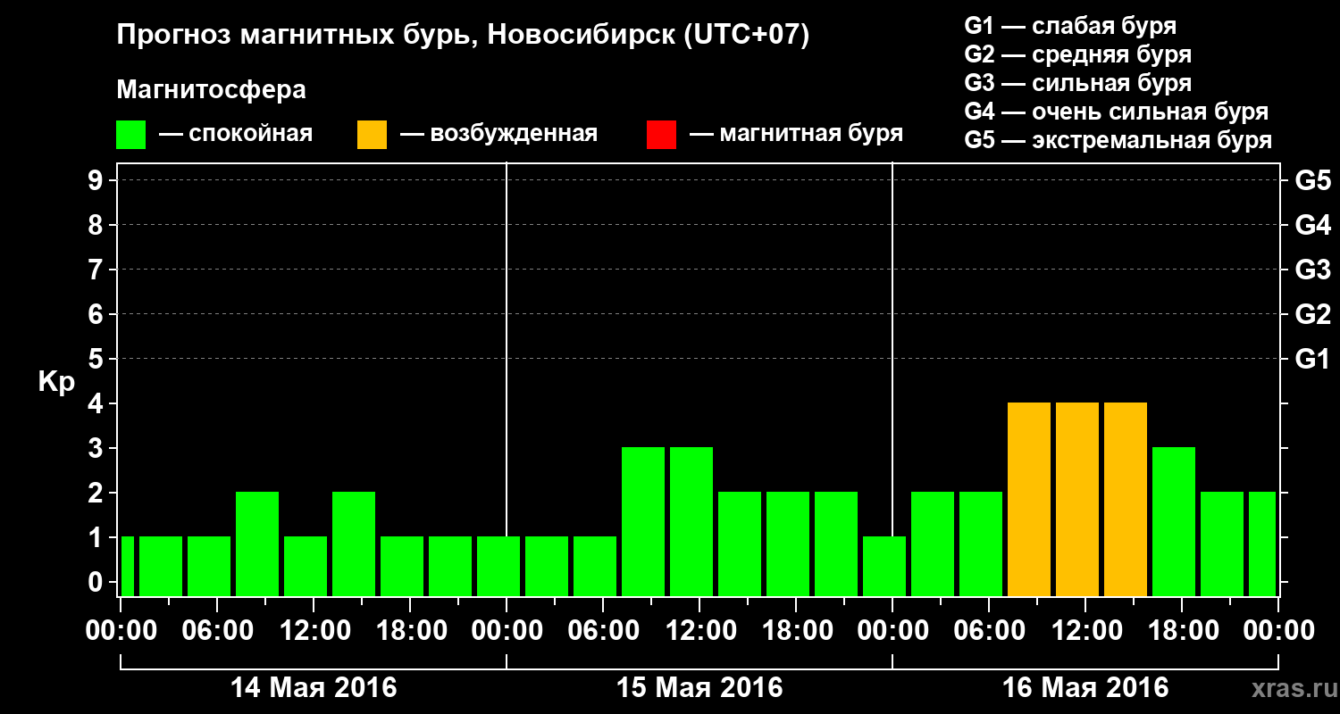Прогноз магнитных бурь в Новосибирске — 14 мая 2016 года