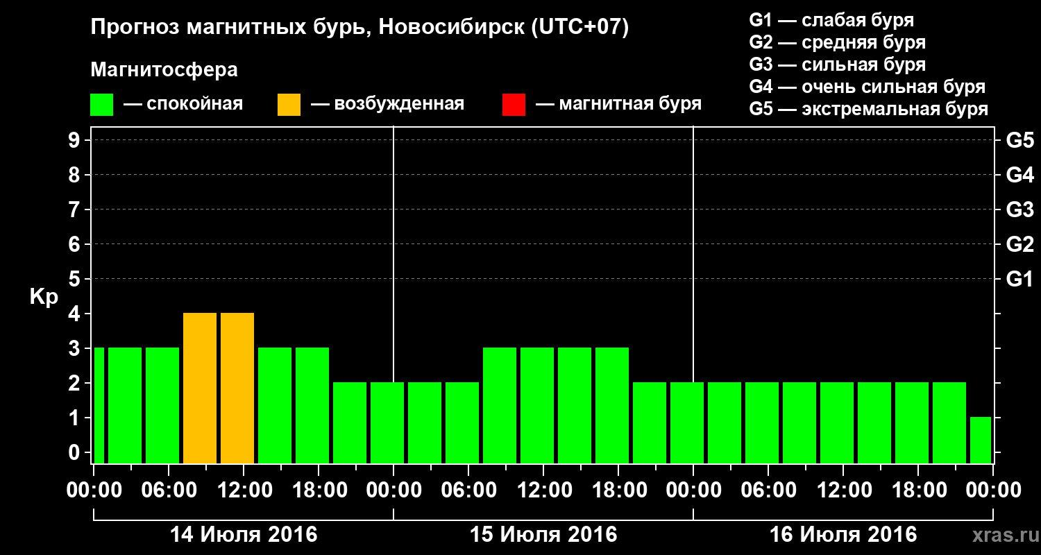 Прогноз магнитных бурь в Новосибирске — 14 июля 2016 года
