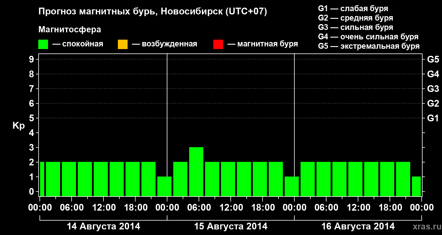 Прогноз магнитных бурь в Новосибирске — 14 августа 2014 года