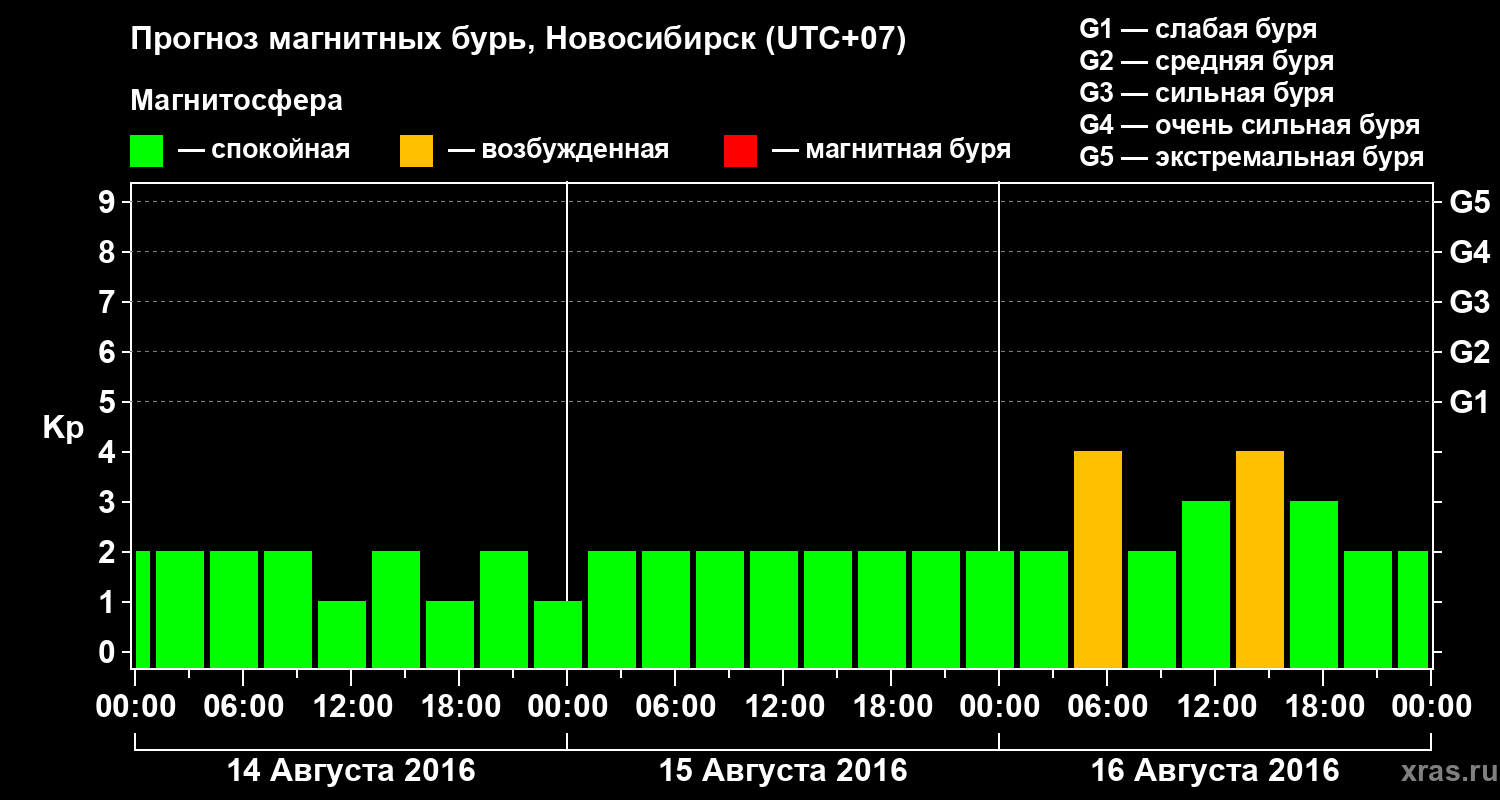 Прогноз магнитных бурь в Новосибирске — 14 августа 2016 года