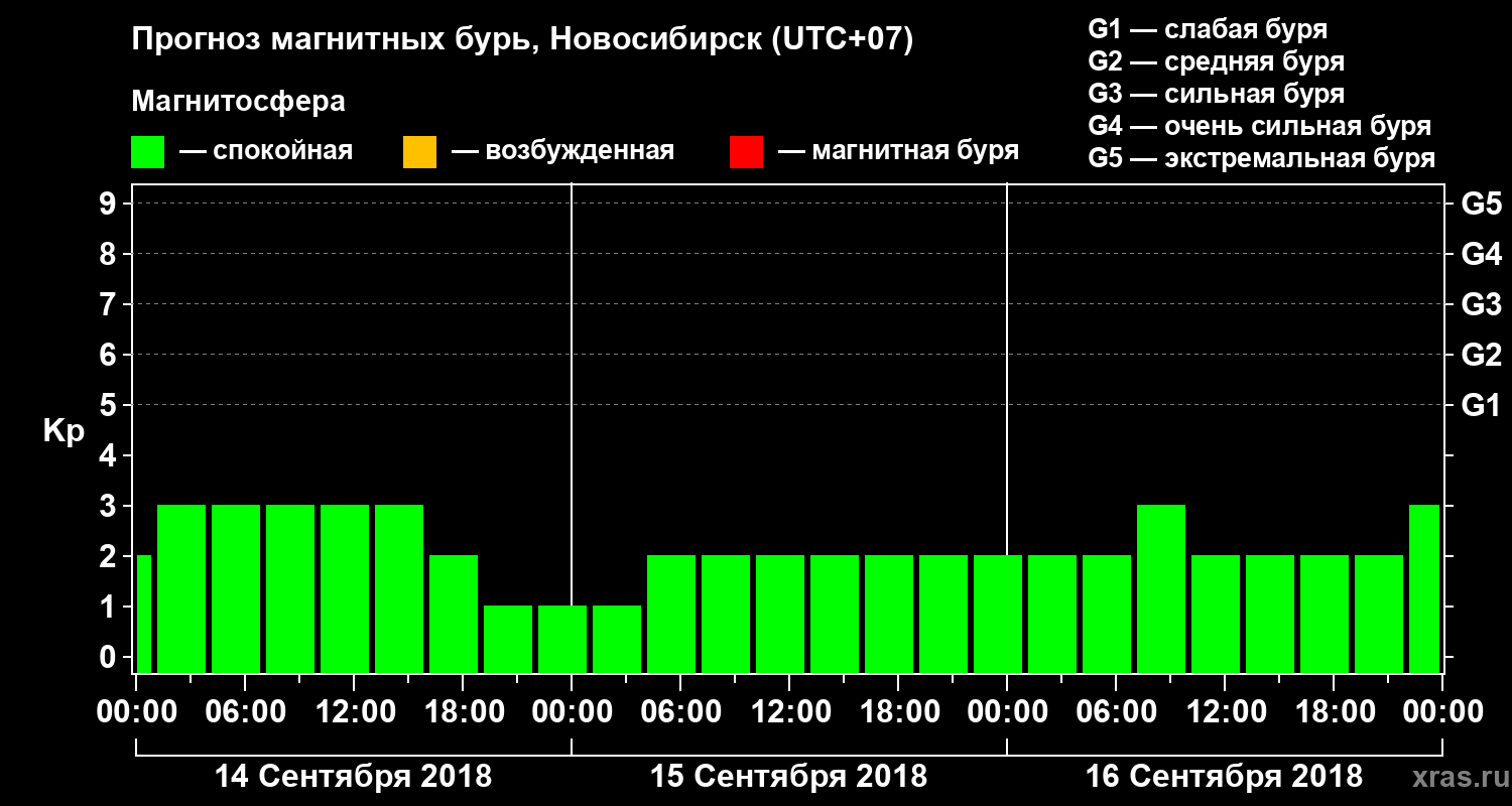 Прогноз магнитных бурь в Новосибирске — 14 сентября 2018 года