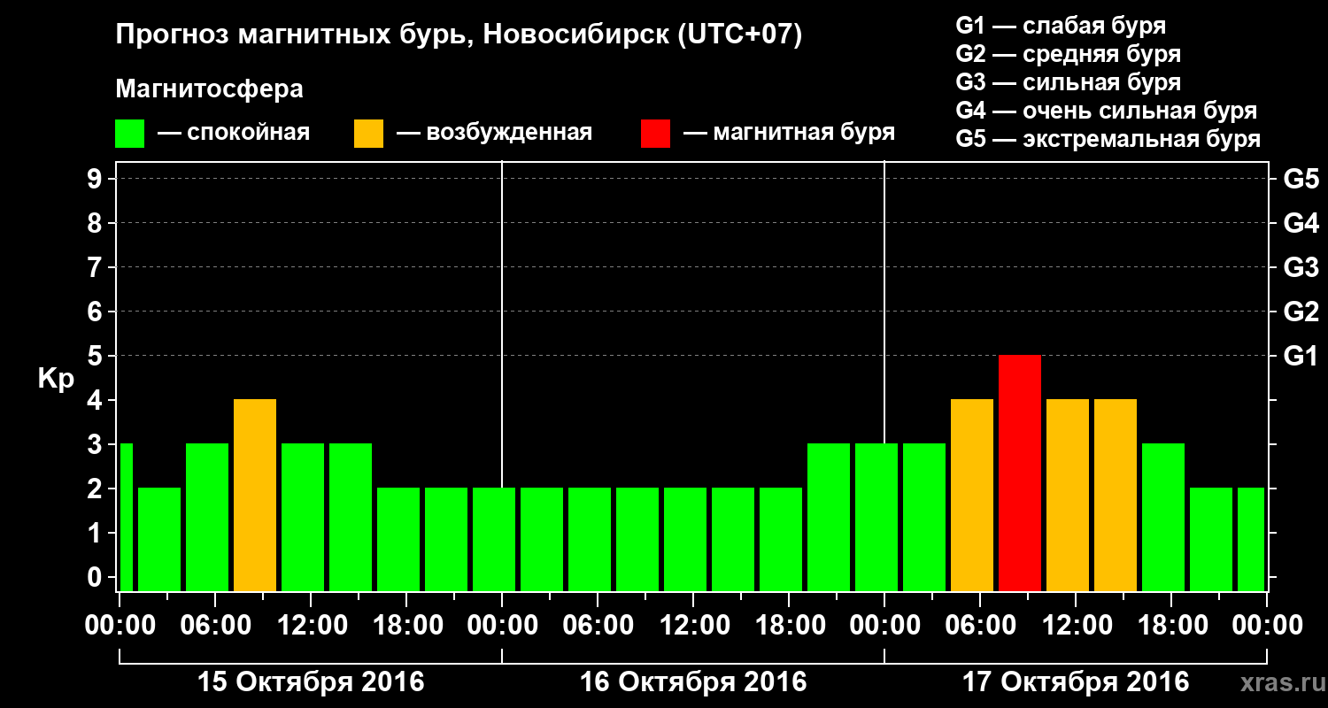 Прогноз магнитных бурь в Новосибирске — 15 октября 2016 года
