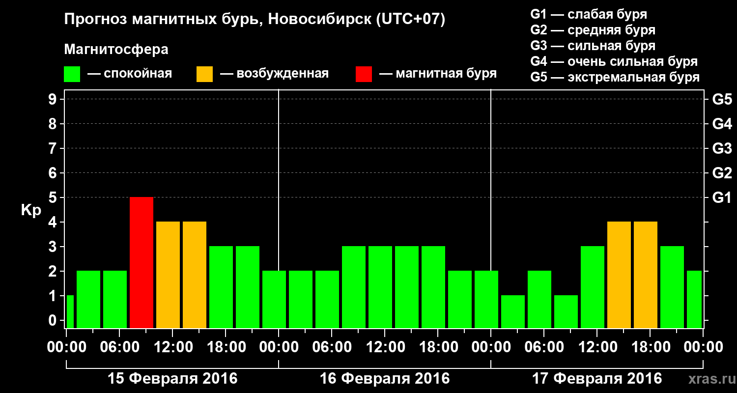 Прогноз магнитных бурь в Новосибирске — 15 февраля 2016 года