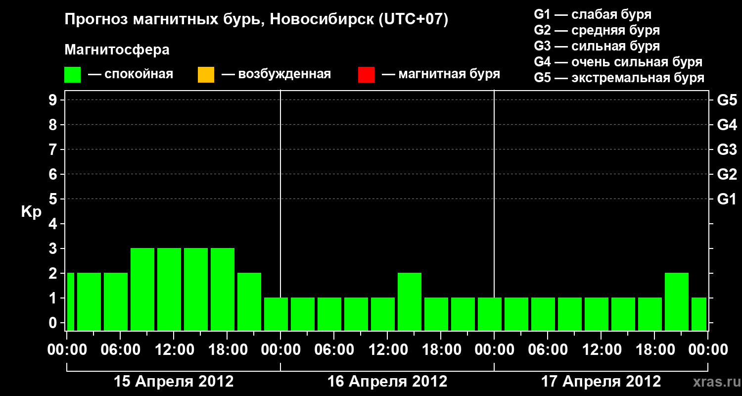 Прогноз магнитных бурь в Новосибирске — 15 апреля 2012 года