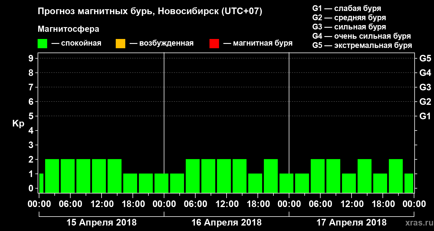 Прогноз магнитных бурь в Новосибирске — 15 апреля 2018 года