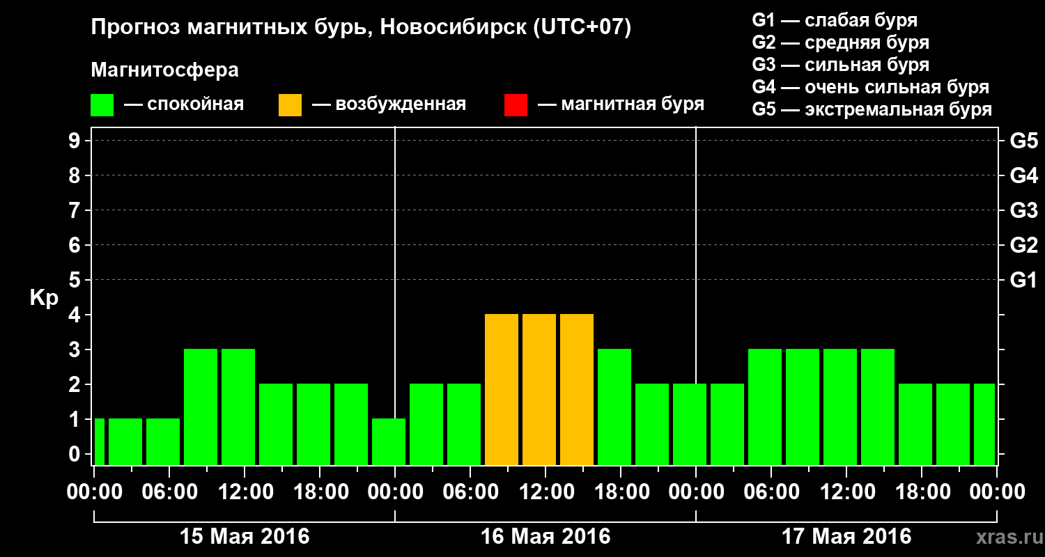 Прогноз магнитных бурь в Новосибирске — 15 мая 2016 года