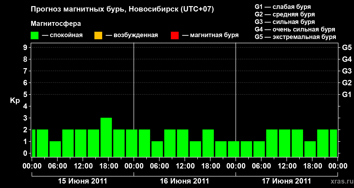 Прогноз магнитных бурь в Новосибирске — 15 июня 2011 года