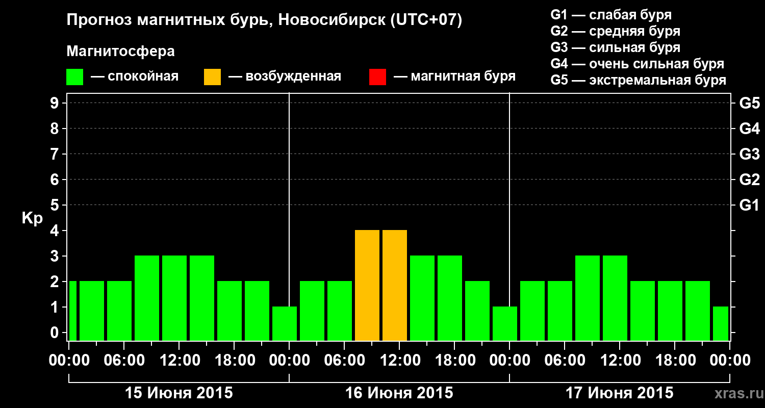 Прогноз магнитных бурь в Новосибирске — 15 июня 2015 года