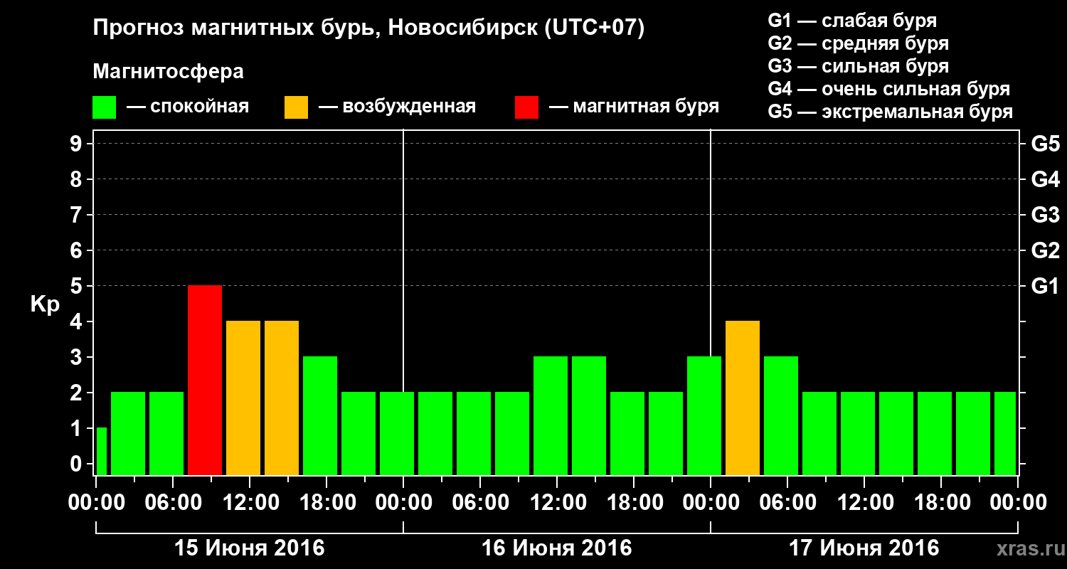 Прогноз магнитных бурь в Новосибирске — 15 июня 2016 года