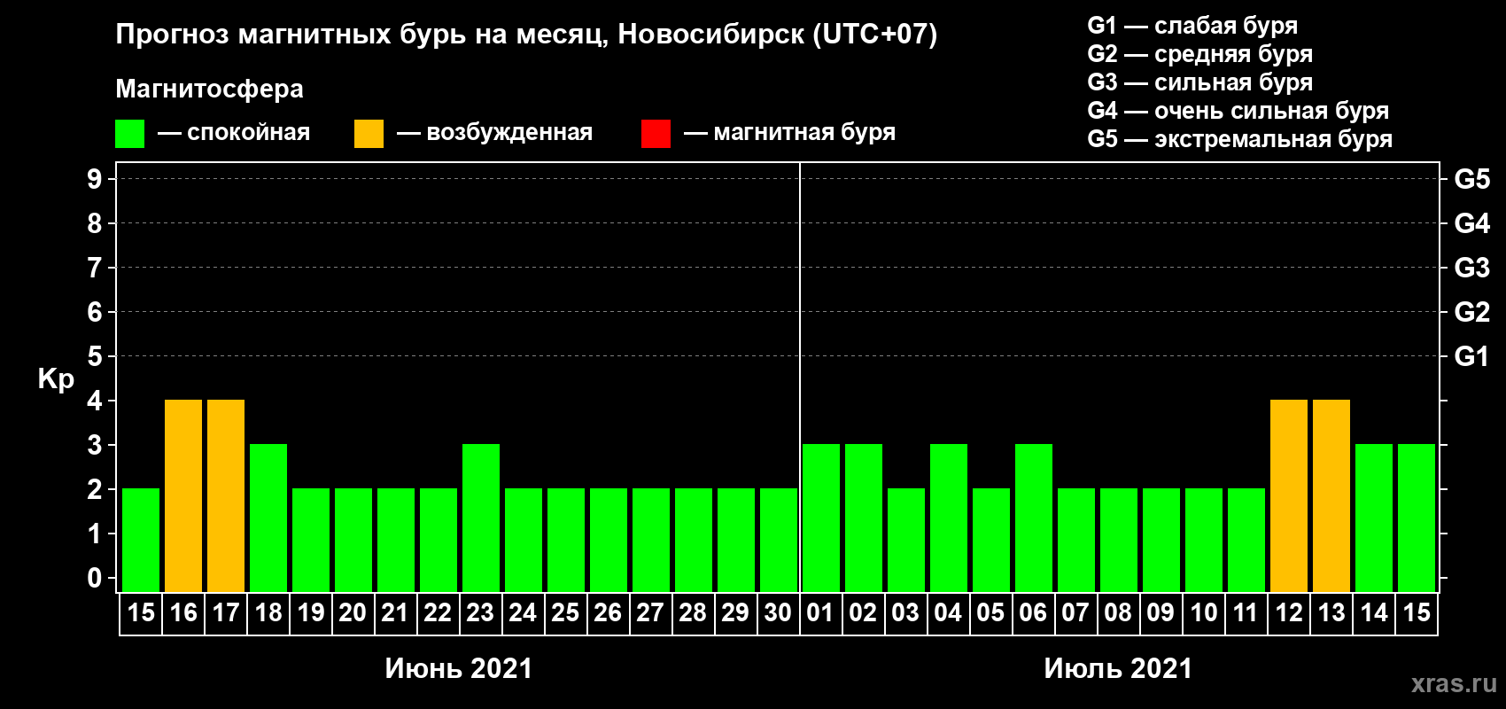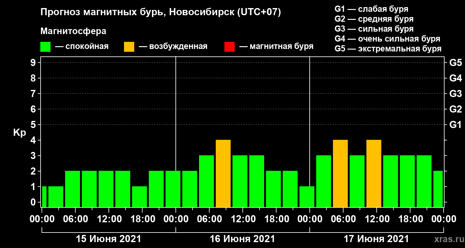 Прогноз магнитных бурь в Новосибирске — 15 июня 2021 года