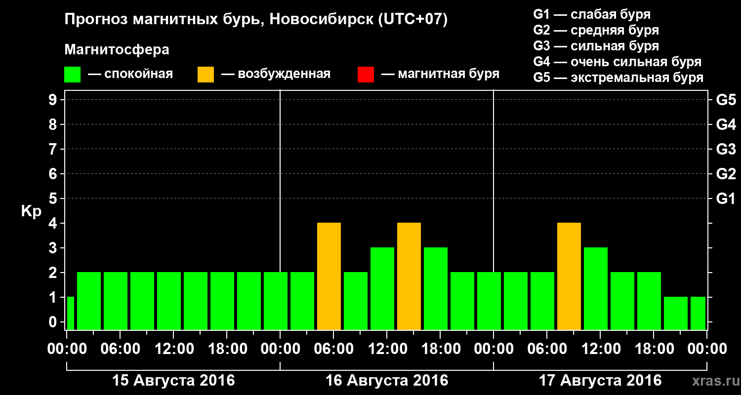 Прогноз магнитных бурь в Новосибирске — 15 августа 2016 года