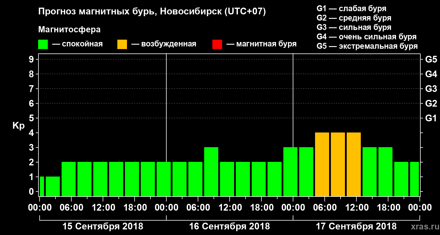 Прогноз магнитных бурь в Новосибирске — 15 сентября 2018 года