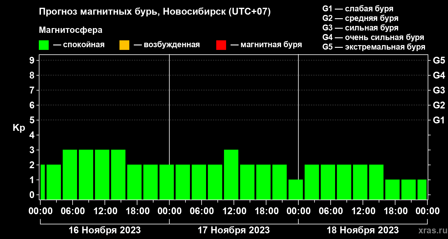 Прогноз магнитных бурь в Новосибирске — 16 ноября 2023 года