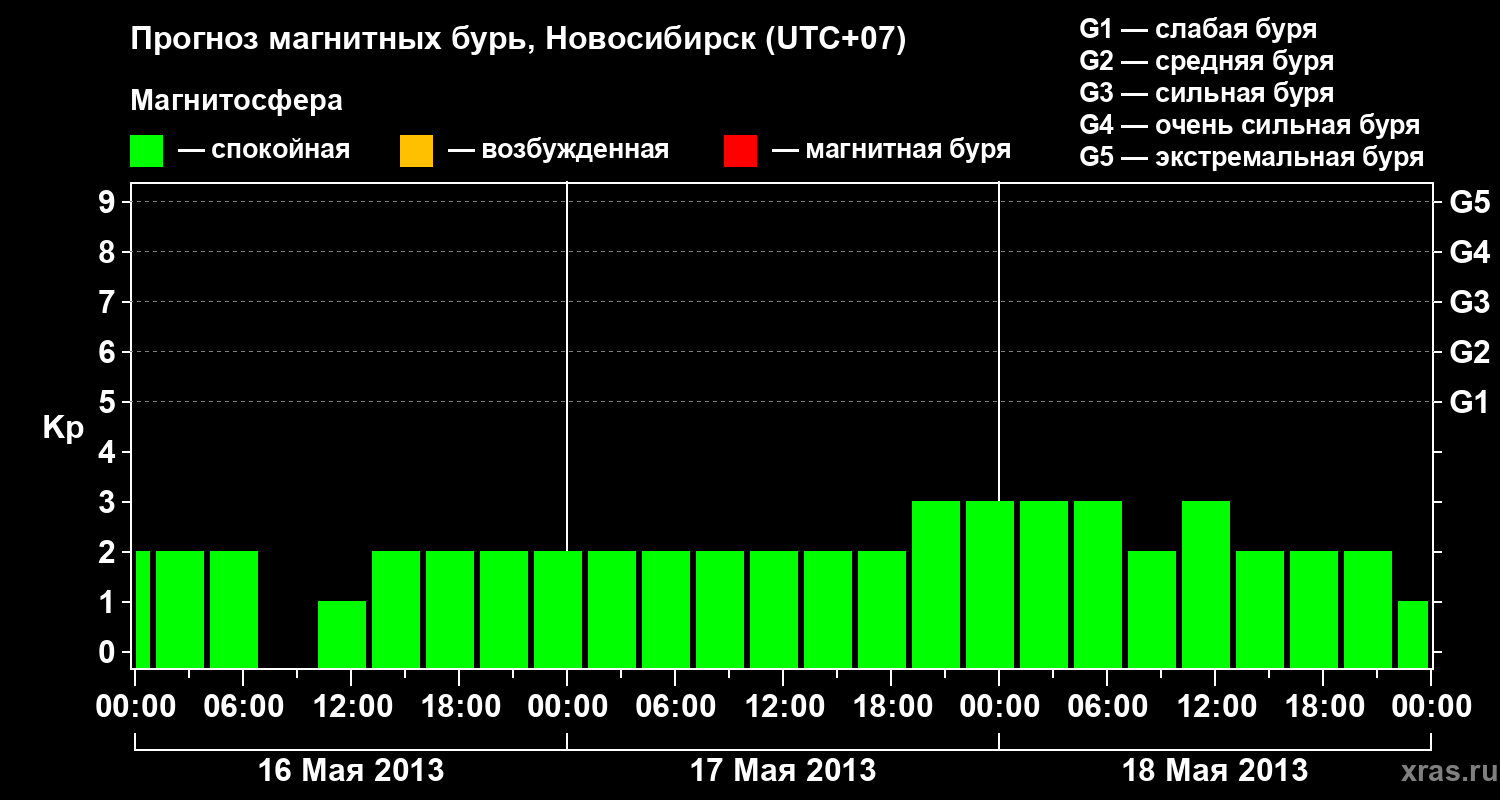 Прогноз магнитных бурь в Новосибирске — 16 мая 2013 года