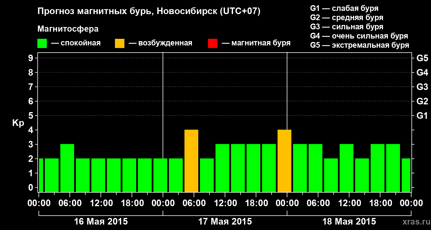 Прогноз магнитных бурь в Новосибирске — 16 мая 2015 года