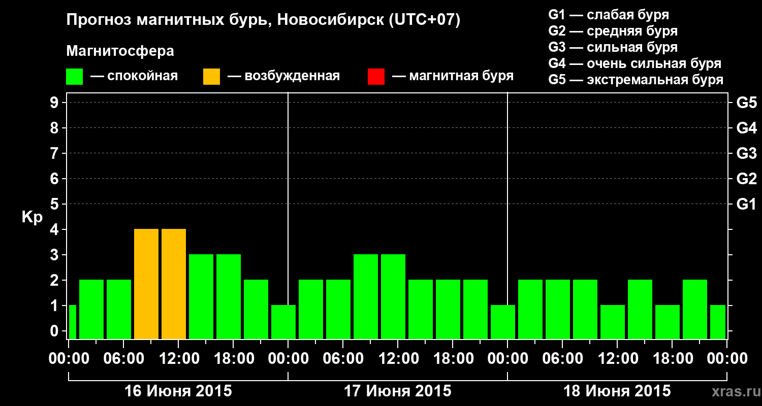 Прогноз магнитных бурь в Новосибирске — 16 июня 2015 года