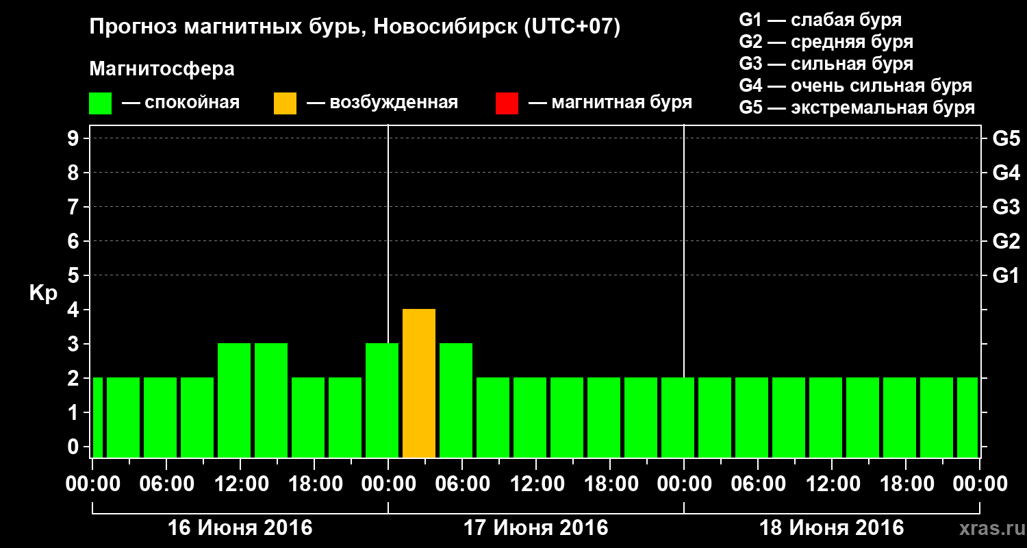 Прогноз магнитных бурь в Новосибирске — 16 июня 2016 года