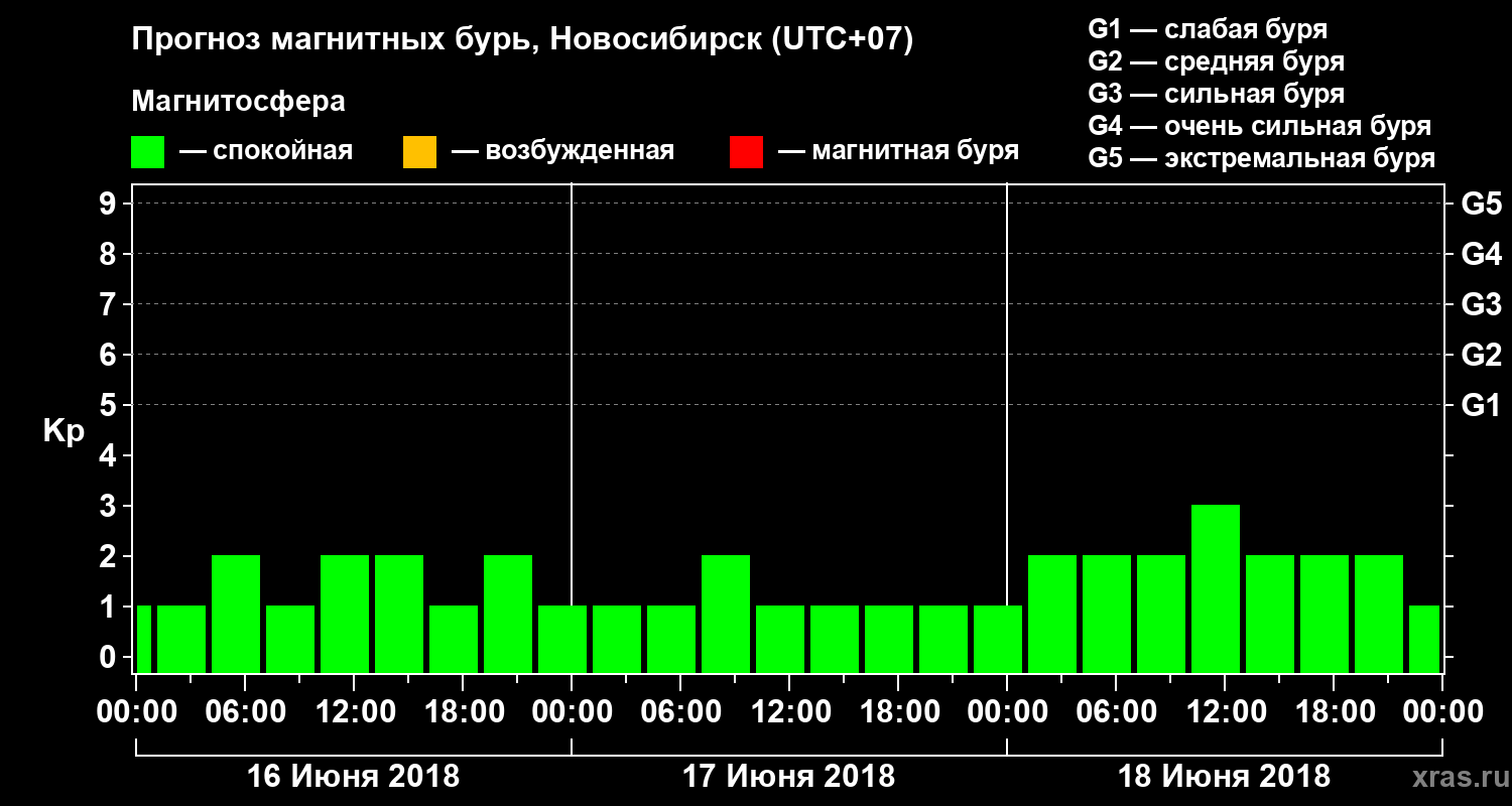Прогноз магнитных бурь в Новосибирске — 16 июня 2018 года