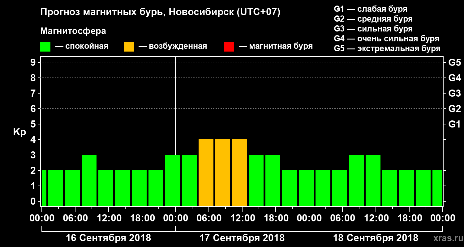 Прогноз магнитных бурь в Новосибирске — 16 сентября 2018 года