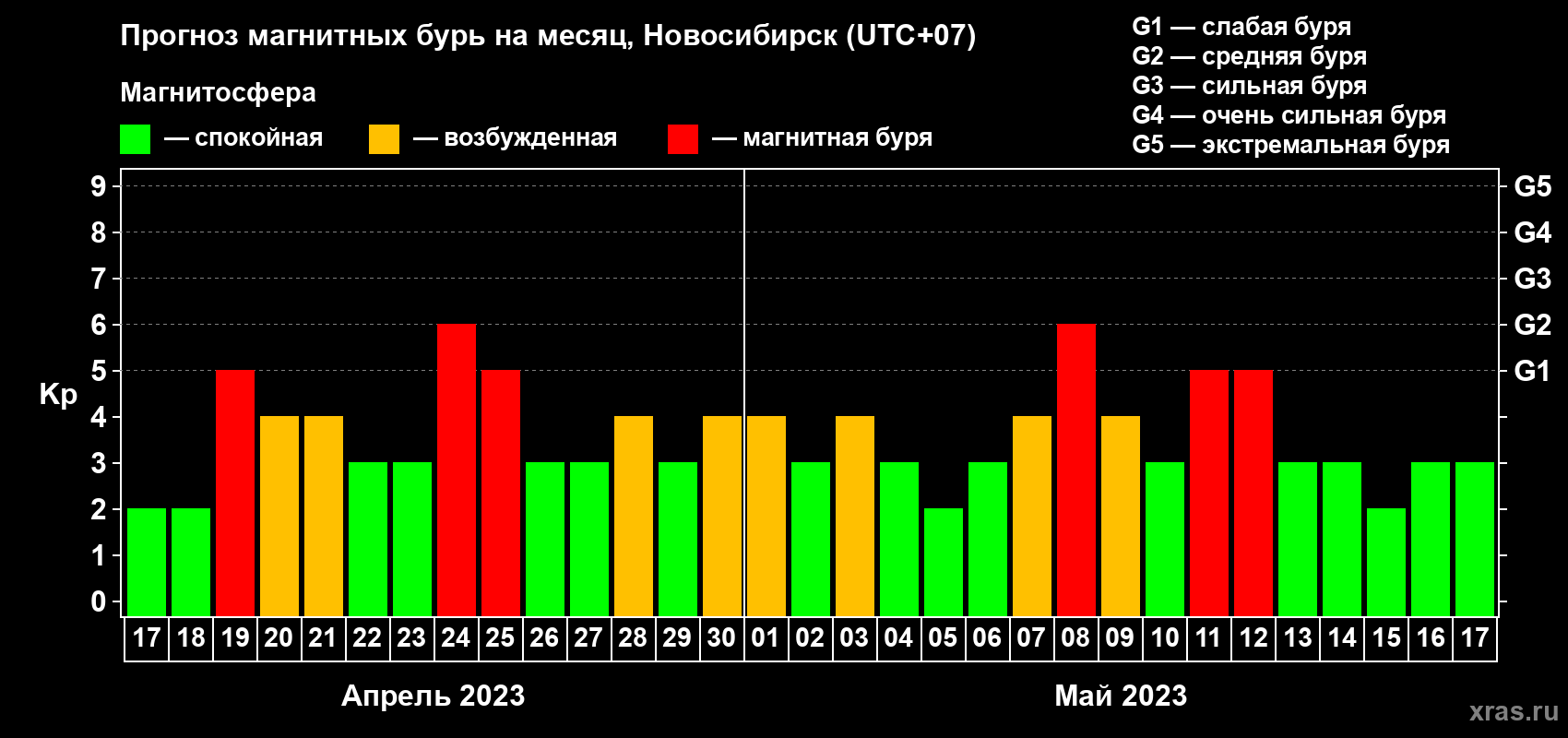 Прогноз магнитных бурь в Новосибирске — 17 апреля 2023 года