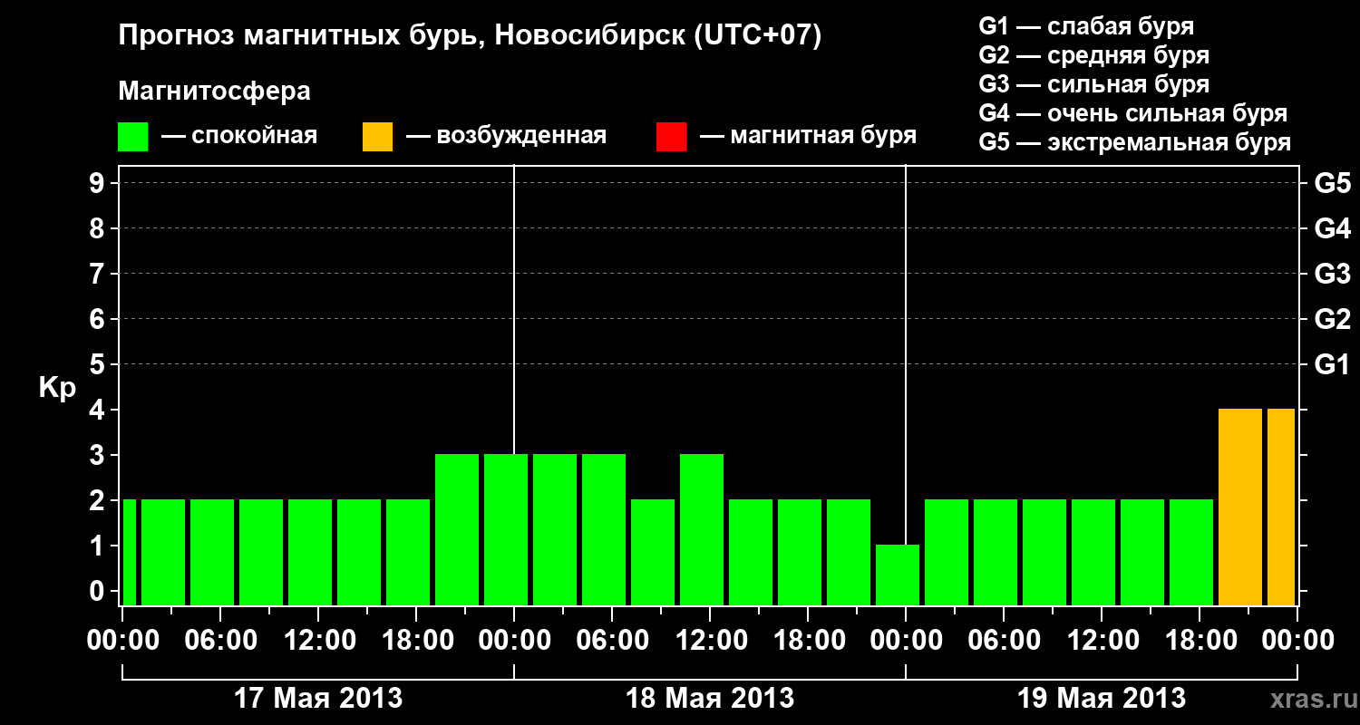Прогноз магнитных бурь в Новосибирске — 17 мая 2013 года