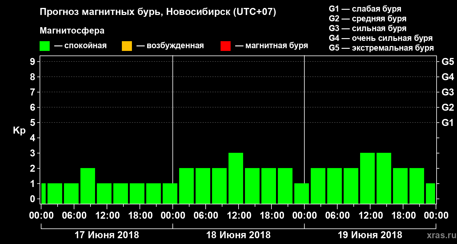 Прогноз магнитных бурь в Новосибирске — 17 июня 2018 года