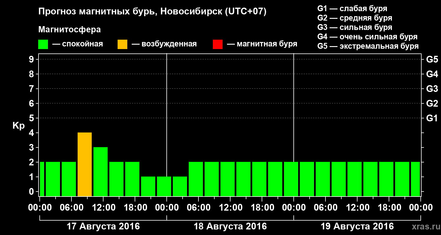 Прогноз магнитных бурь в Новосибирске — 17 августа 2016 года