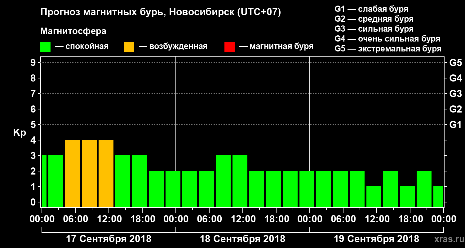 Прогноз магнитных бурь в Новосибирске — 17 сентября 2018 года