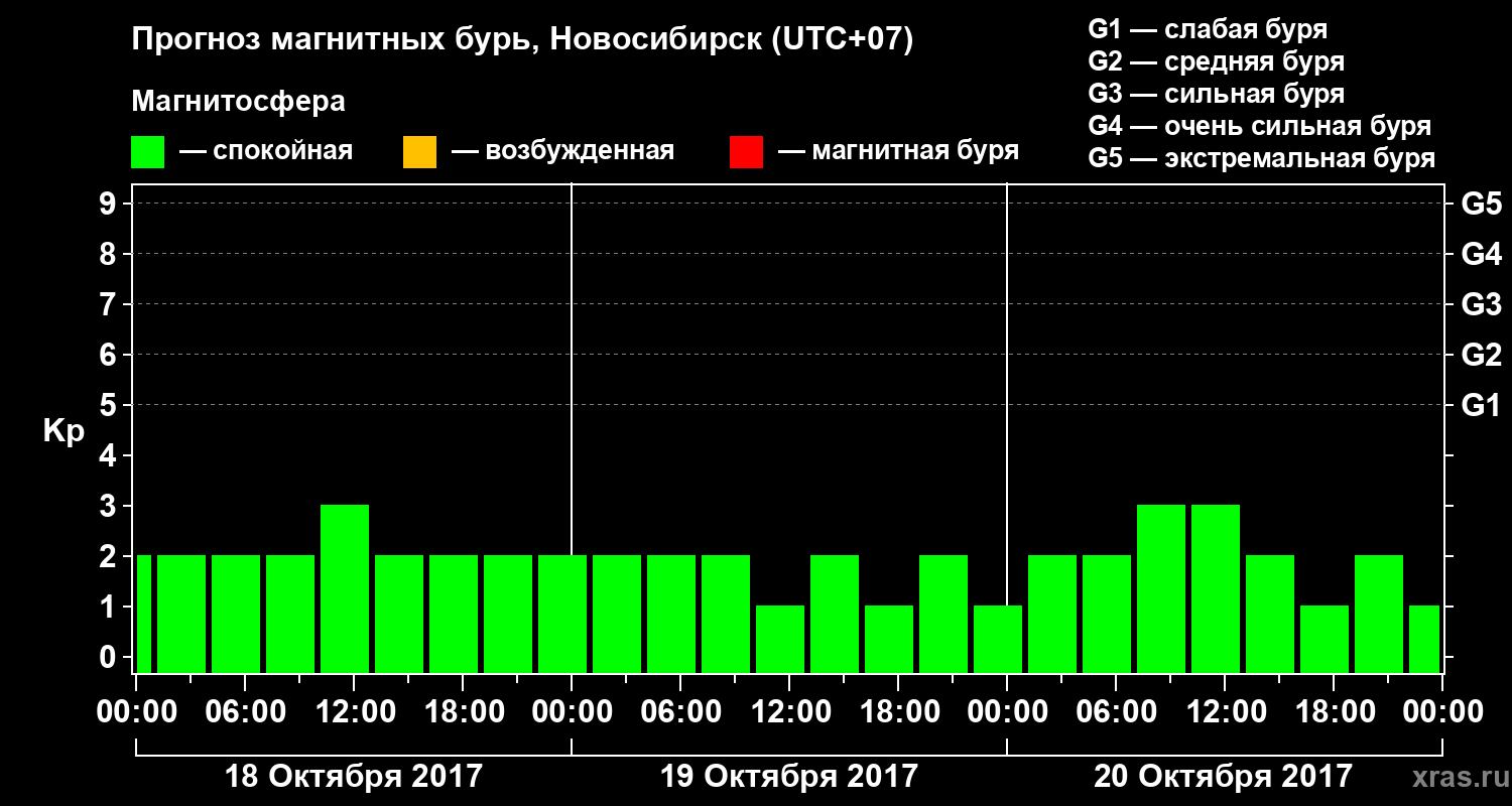 Прогноз магнитных бурь в Новосибирске — 18 октября 2017 года