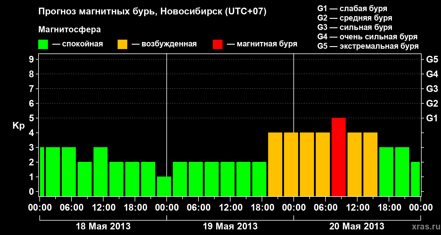 Прогноз магнитных бурь в Новосибирске — 18 мая 2013 года