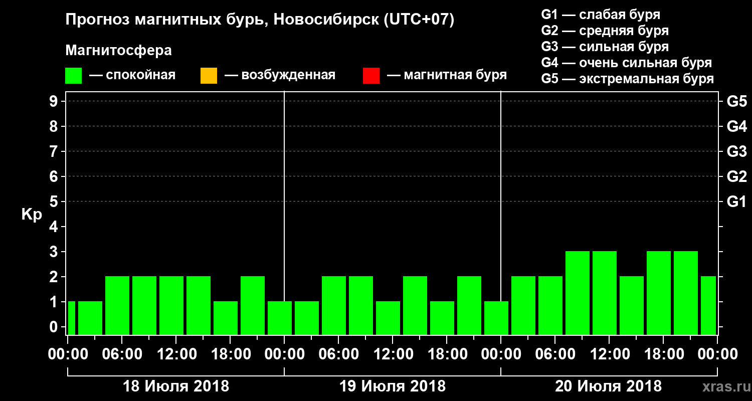 Прогноз магнитных бурь в Новосибирске — 18 июля 2018 года