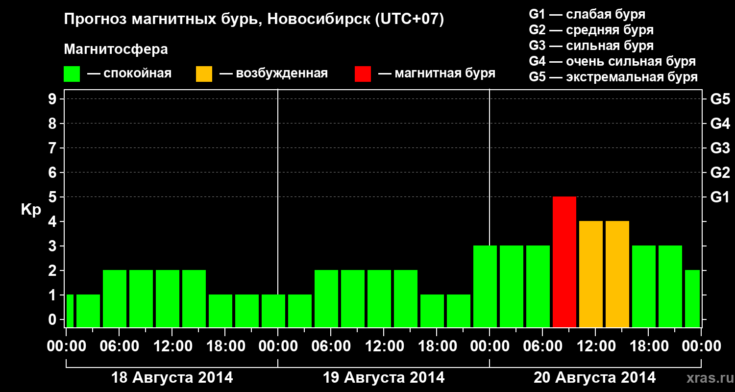 Прогноз магнитных бурь в Новосибирске — 18 августа 2014 года