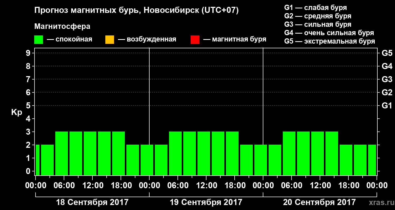 Прогноз магнитных бурь в Новосибирске — 18 сентября 2017 года