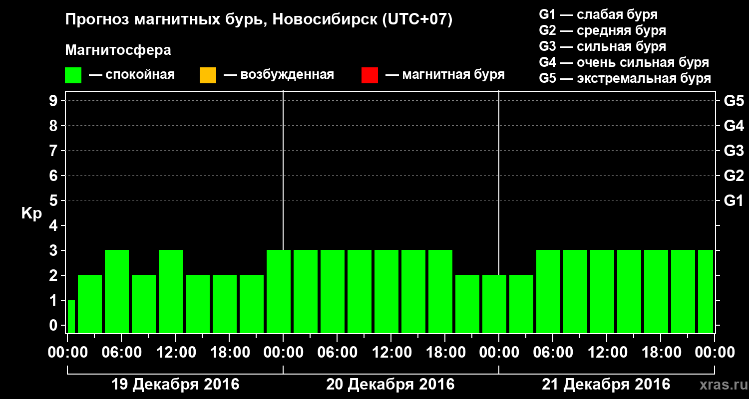 Прогноз магнитных бурь в Новосибирске — 19 декабря 2016 года