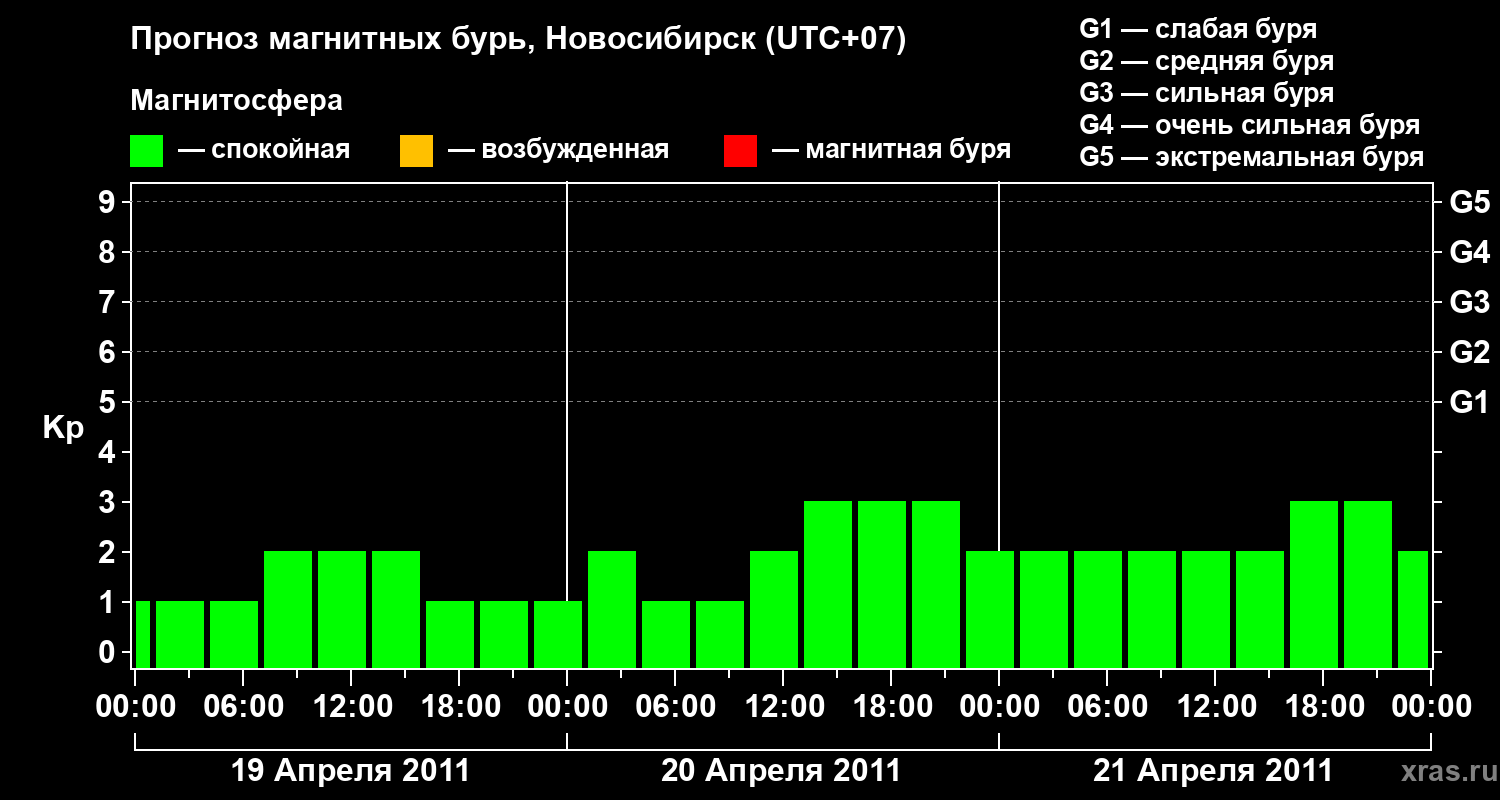 Прогноз магнитных бурь в Новосибирске — 19 апреля 2011 года