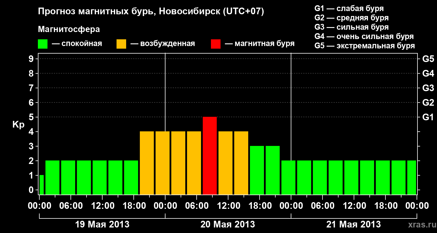 Прогноз магнитных бурь в Новосибирске — 19 мая 2013 года