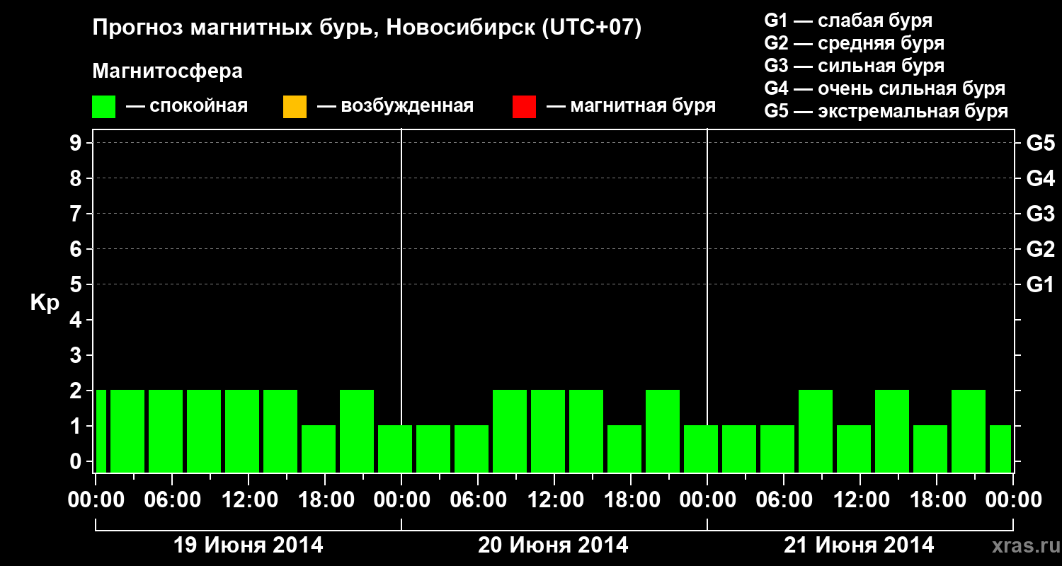 Прогноз магнитных бурь в Новосибирске — 19 июня 2014 года