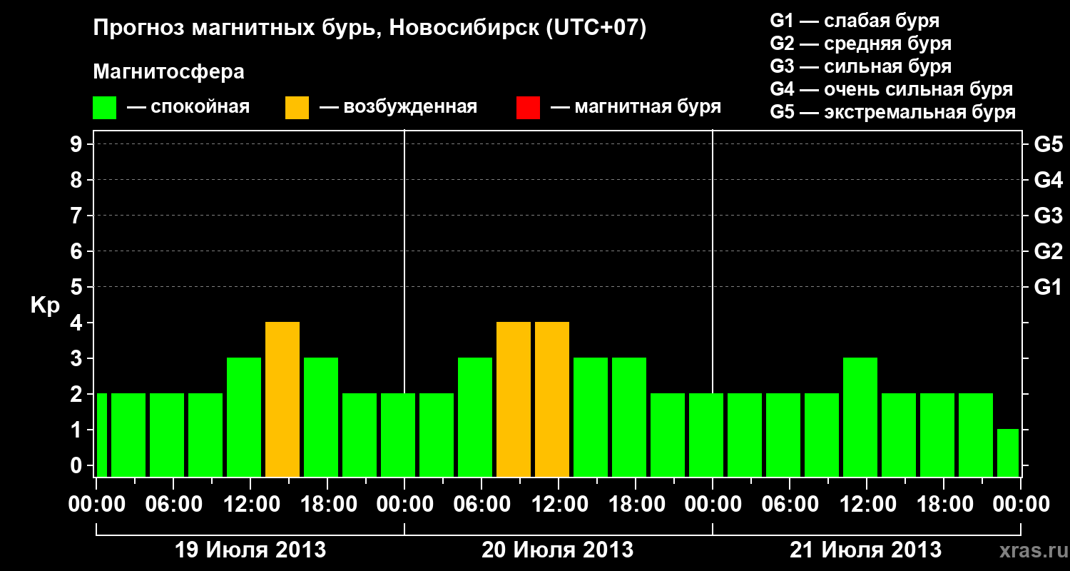 Прогноз магнитных бурь в Новосибирске — 19 июля 2013 года