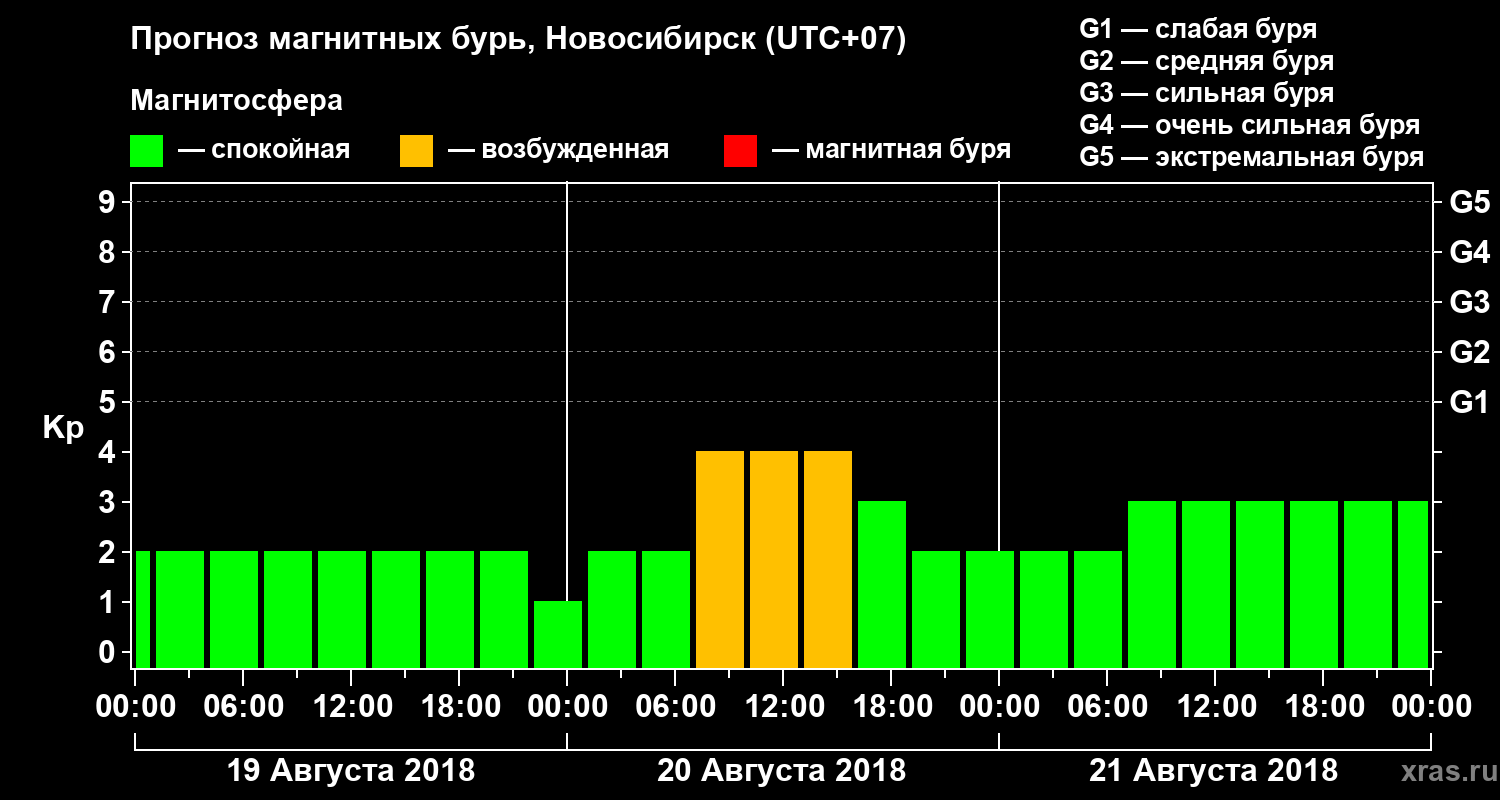 Прогноз магнитных бурь в Новосибирске на 19 августа 2018 года