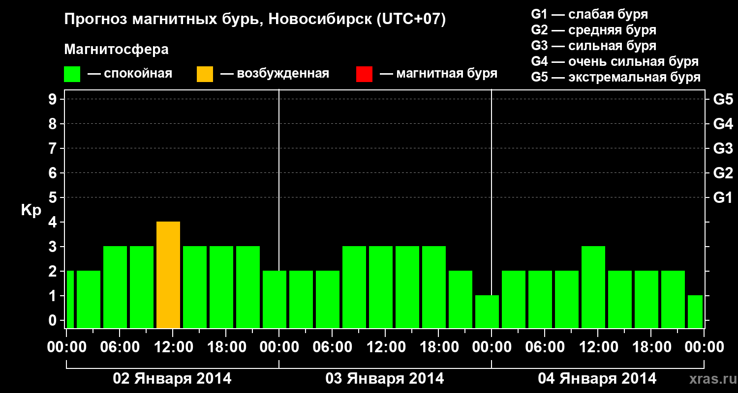 Прогноз магнитных бурь в Новосибирске — 2 января 2014 года
