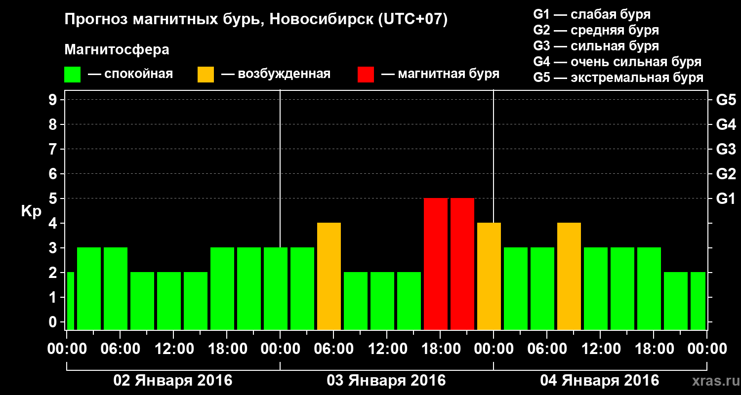 Прогноз магнитных бурь в Новосибирске — 2 января 2016 года