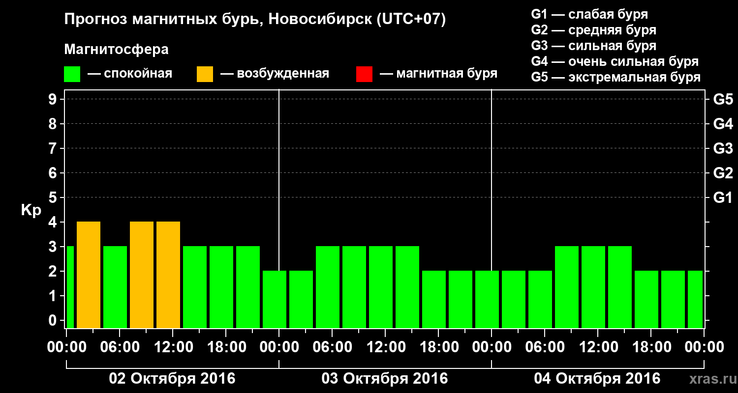 Прогноз магнитных бурь в Новосибирске на 2 октября 2016 года