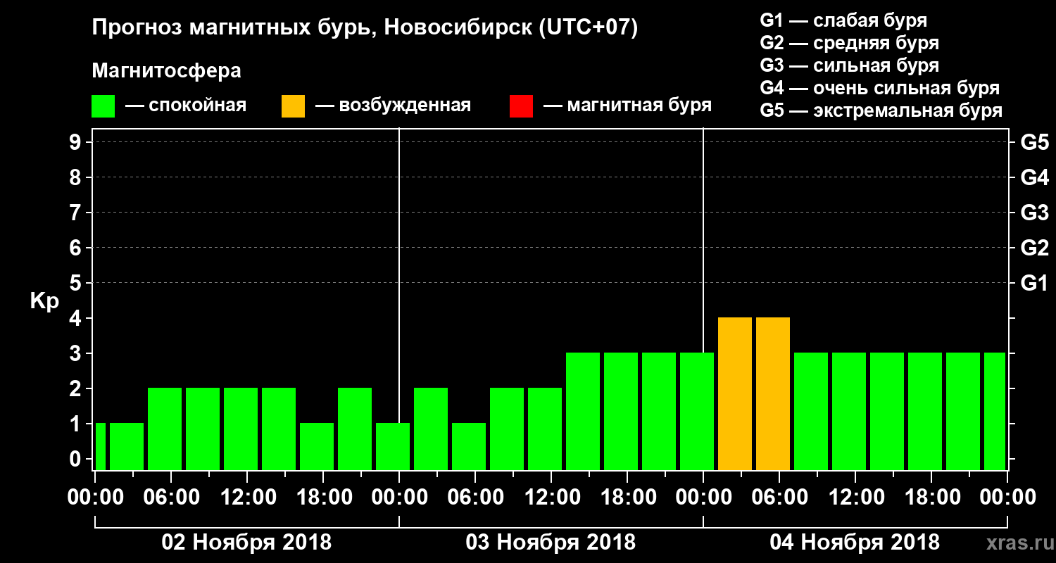 Прогноз магнитных бурь в Новосибирске — 2 ноября 2018 года