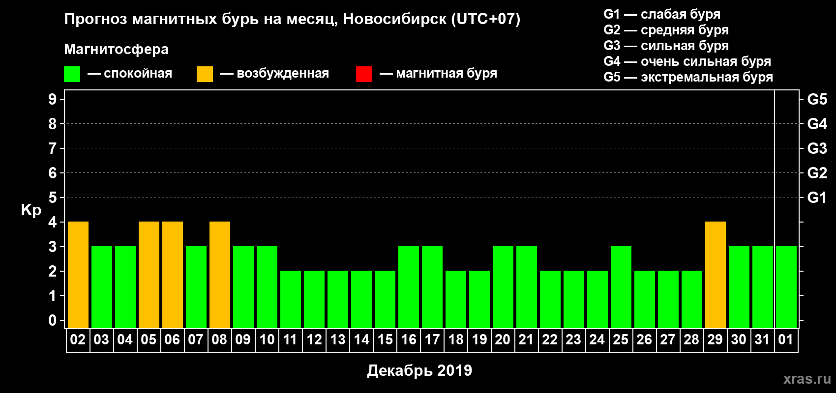 Прогноз магнитных бурь в Новосибирске — 2 декабря 2018 года