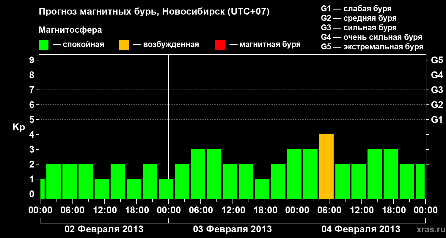 Прогноз магнитных бурь в Новосибирске — 2 февраля 2013 года