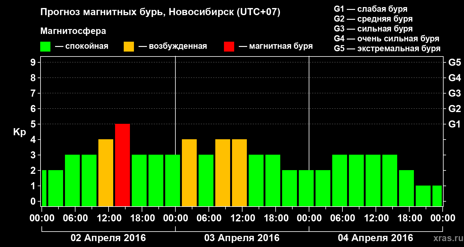 Прогноз магнитных бурь в Новосибирске — 2 апреля 2016 года