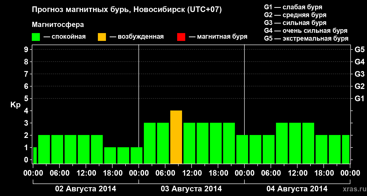 Прогноз магнитных бурь в Новосибирске — 2 августа 2014 года