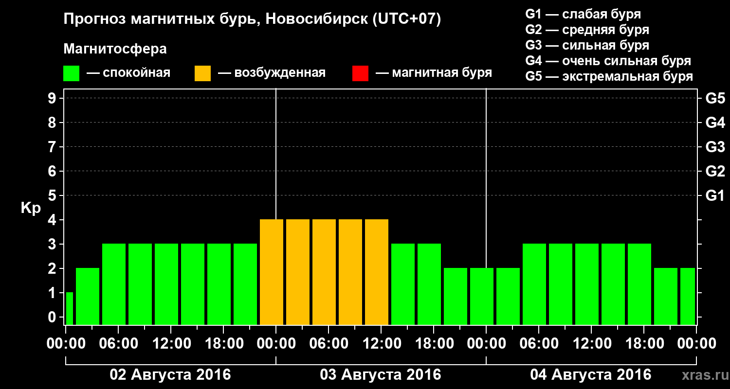 Прогноз магнитных бурь в Новосибирске — 2 августа 2016 года